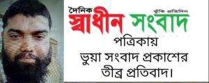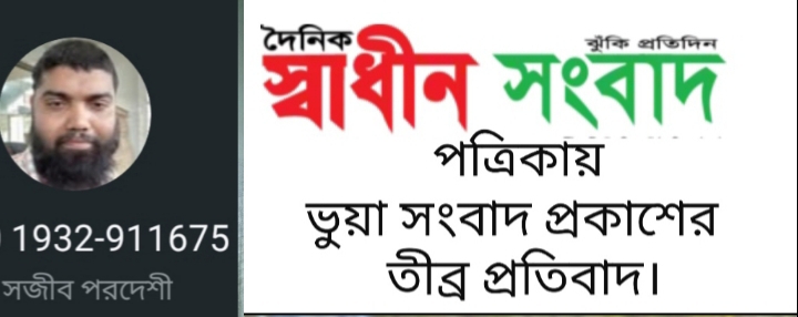 “হোসেনপুরে অসুস্থ সাংবাদিকের চিকিৎসা উদ্যোগে চাঁদা দাবির অভিযোগ এক সাংবাদিকের বিরুদ্ধে” এই শিরোনামে বুধবার (৩০ জুলাই) দৈনিক স্বাধীন সংবাদ পত্রিকায় মিথ্যা অসত্য ও বানোয়াট সংবাদ প্রকাশের তীব্র নিন্দা ও প্রতিবাদ জানিয়েছেন সাংবাদিক শাহজাহান সাজু। ভুয়া তথ্যের ভিত্তিতে মোটা অংকের টাকার বিনিময়ে গাজীপুরের সারোয়ার উদ্দিন ভূঁইয়া নামের এক সাংবাদিক দৈনিক স্বাধীন সংবাদ পত্রিকায় প্রকাশিত সংবাদে যাহা উল্লেখ করা হয়:
