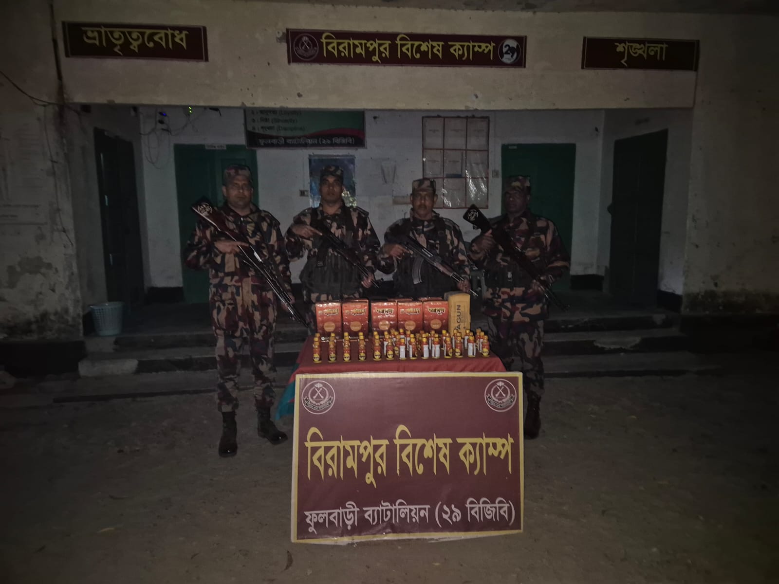 Border Guard Bangladesh (বিজিবি)-এর ফুলবাড়ী ব্যাটালিয়ন (২৯ বিজিবি) পৃথক চোরাচালানবিরোধী অভিযানে মালিকবিহীন অবস্থায় বিপুল পরিমাণ বাংলাদেশি যৌন উত্তেজক সিরাপ আটক করেছে।