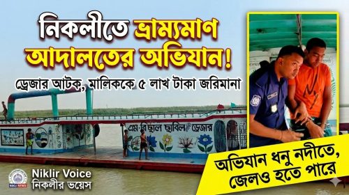 নিকলীতে ধনু নদী থেকে অবৈধ বালু উত্তোলন: ড্রেজার জব্দ, আটক ১